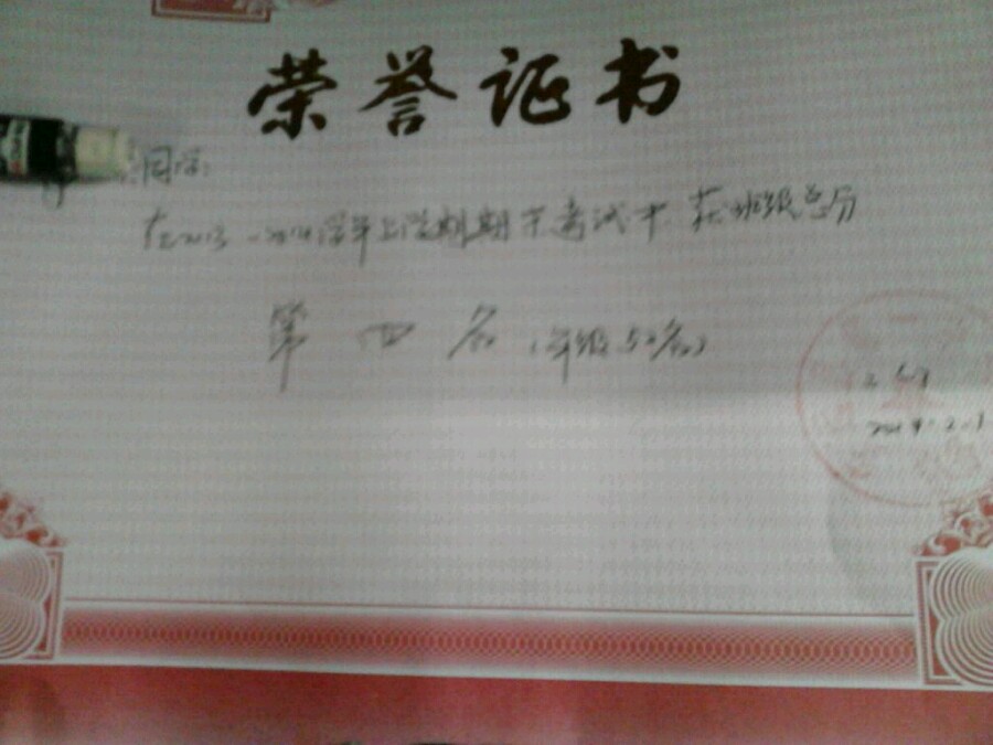 我的第三张荣誉证书嘿嘿