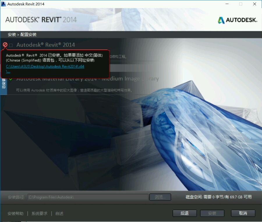 注意!!!:若是使用本方案,可很大程度的避免Error 1603、Error 1619错误,但若是不满足上述三个条件(一个或多个),revit安装完成后可能无法正常运行