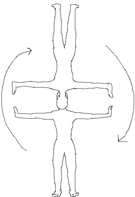 2个人进行的侧手翻的“接吻”。