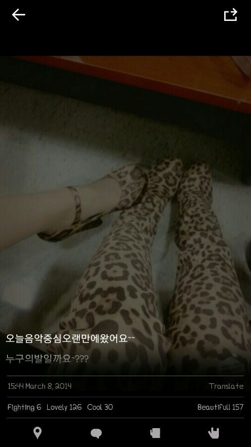翻译:今天来到久违的音乐中心了~~ 是谁的脚呢~???