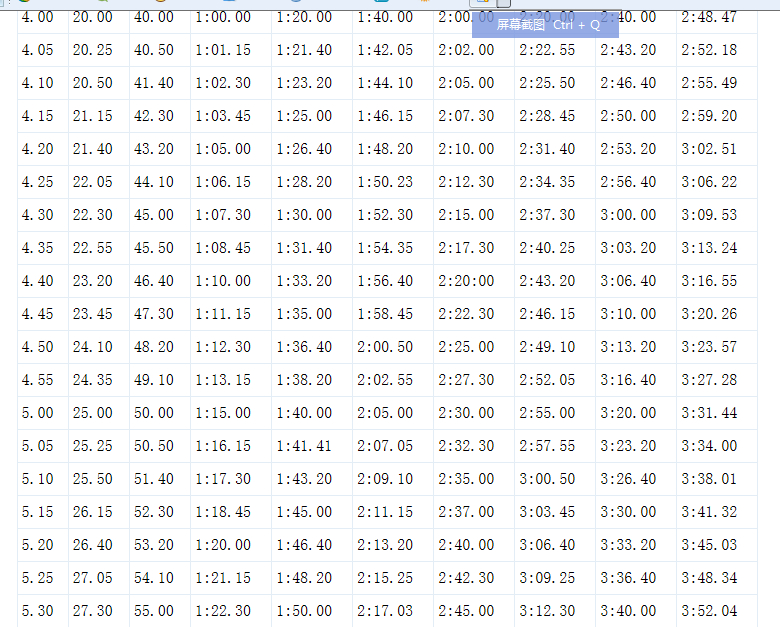 回复 li_aoli :这个表是我转发的,没有430的配速,你可以以此类推往上加即可。