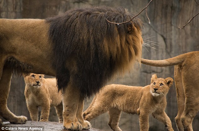 当狮爸爸第一次遇到其中一个幼狮时,它冲着小家伙咆哮,告诉它在这里谁才是老大