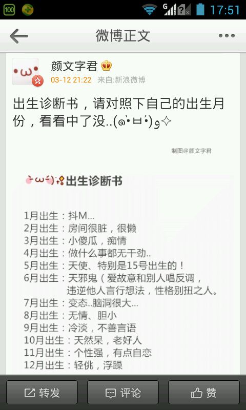 【湉晨甜橙】 出生诊断书,请对照下自己的出生月份,看看中了没.