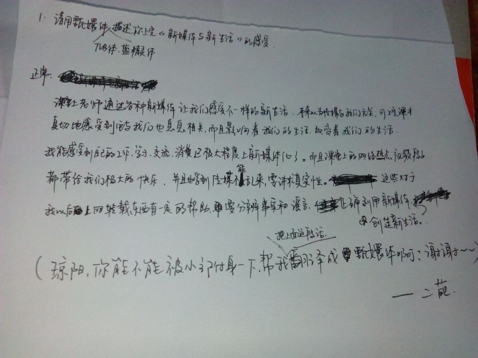 课上老师通过新媒体让我们感受到了不一样的新的生活,本来以为新媒体与我们无关,可上完课才真切的感受到它和我们的生活息息相关,而且影响着我们的生活,改变着我们的生活