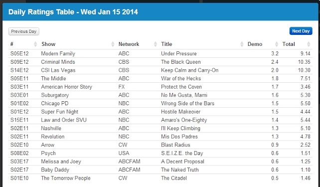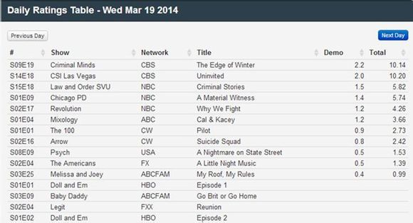 S14E19(观影人数其实还是排名第二的,真心希望下一季CSI能调整到一个更好的播出时间,虽然可能性不大...诶...)