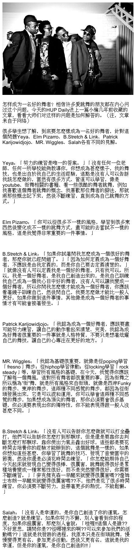 先贴一些hurryup上的内容,这是叶正他们去年成立的dance studio 有兴趣的可以关注他们的微博