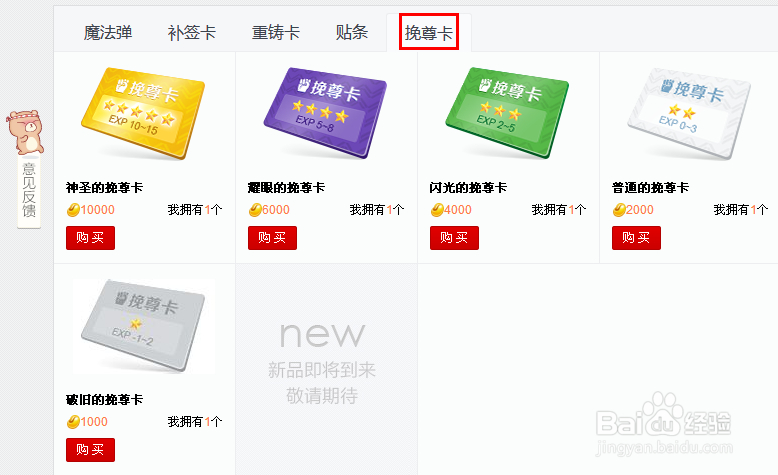 使用耀眼的挽尊卡挽回他的尊严!效果:猫咪吧经验+6