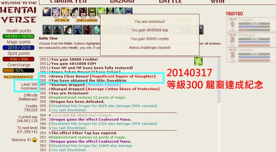 300级的龙裔 一直是微微的目标 虽然只是各虚名 但能达到 微微还是很开心