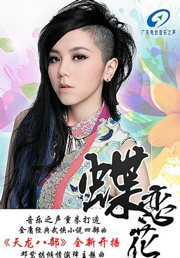 超超超喜欢《蝶恋花》这首歌,第一次听的时候,虽然听不懂粤语歌词,但是脑海里就浮现出一幅江湖武侠爱恨情仇的古风画面。百度一搜,这首歌是广州地区电台《天龙八部》广播剧的主题曲,曲意果然被我感觉对了。然后越听越喜欢,紫棋把这首歌演绎得太到位了。但是网上副歌的歌词有两个版本