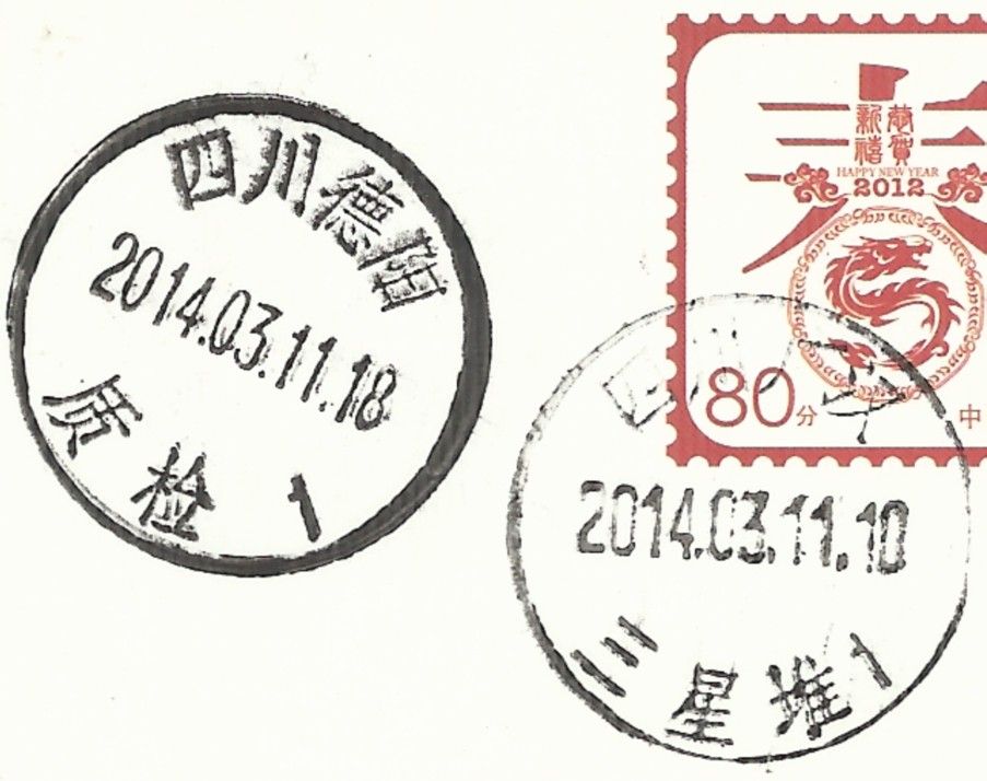 今天收到四川广汉邮友李杰寄出的三星堆日戳.非常喜欢.不想在傍边发现一枚质检日戳.这是我收到的第二枚四川质检日戳.今天发帖出来.期望邮友能提供其它类似的质检日戳.