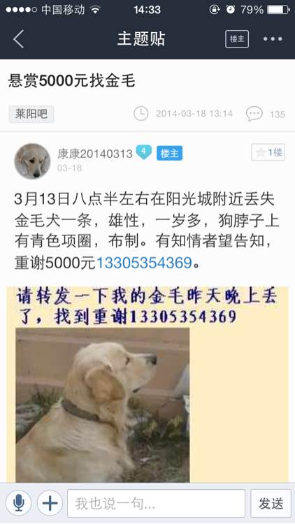 丢金毛的兄弟进来