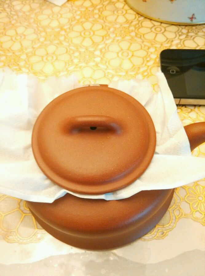 1.在壶口垫上一张家用抽纸固定