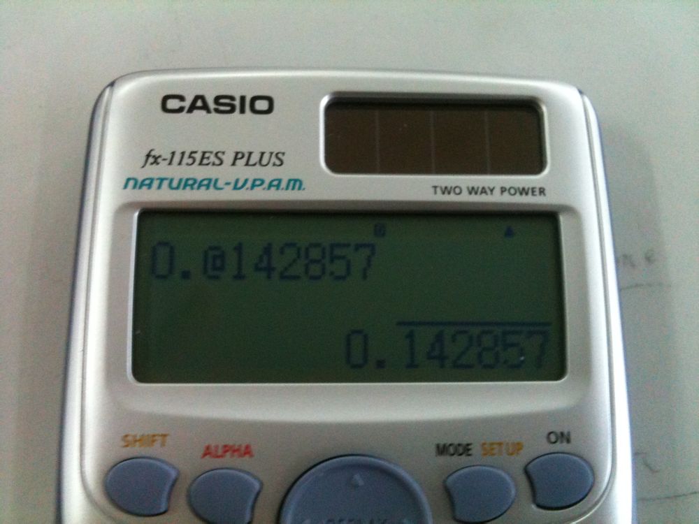 关键在于 A4 号字符,就是 ln( 右边的那个,在 LineIO 下显示为 @ ,但是在 MathIO 下作循环小数的功能。