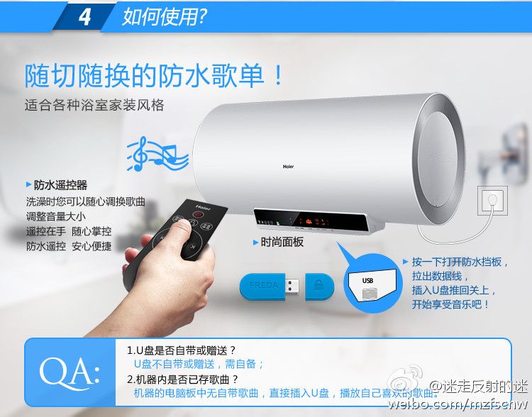 播歌的热水器。。带个手机去洗澡不就好了。。