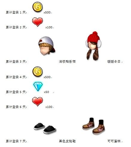 活动内容:活动期间,累计登陆相应的天数,可以领取钻石和服饰等各类丰富奖励,甚至还可以赢取尚未上架的最潮最in最有魅力的稀有男女服饰哦,别忘了每天都来领取哦。