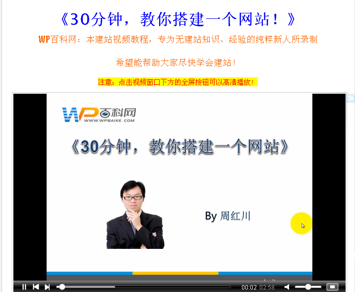 建站教学视频分享:30分钟,教你搭建一个 网站