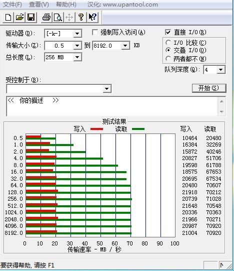 tp8上的 ATTO Disk Benchmarks测试结果,似乎有些不妙啊= =,虽然不是空盘测试。。。是不是接口限速了啊- -