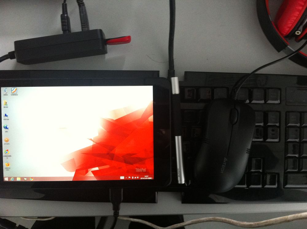 鼠标旁边是给ipad配的Adonit Jot Pro电容笔,打开系统自带的印象笔记试用了一下,定位比较精准,不过手写效果比ipad差,画直线的操作下,会出现曲曲折折的情况。。。不过极少出现断线情况。