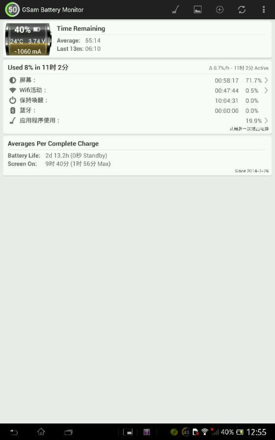 我的是索尼 tablet z SGP341国行,关屏后,屏幕熄了,但CPU没办法进入休眠状态,CPU所有时间都醒着,看了一下进程,是powermanagerservice一直在唤醒CPU。但同样是索尼的手机,关屏后大部分时间处于休眠状态。大Z平板这是正常的么?要说不正常,调成飞行模式,前天晚上睡觉前电量是45%,第二天早上,电量还是45%,也是非常省电的。要说正常,为啥CPU常醒不能处于休眠状态?可有高手帮忙解疑求助。。。。。。。。