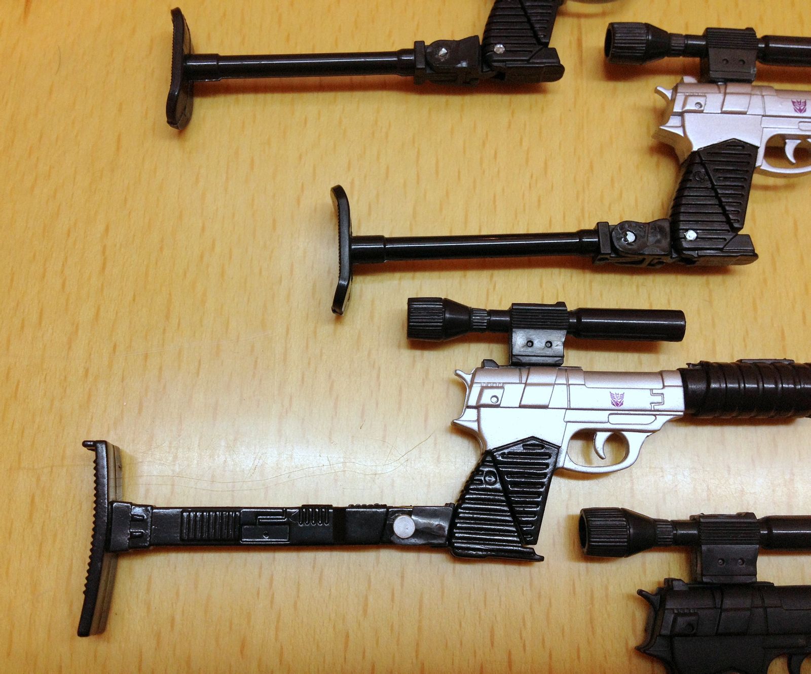 仔细看的话,两版声波所携带的老威枪是新模,与MP01模具柱子所携带的还是有比较明显的区别。(通二那把配色完全不同就不提了,看不出来的同学我只能表示遗憾了……)