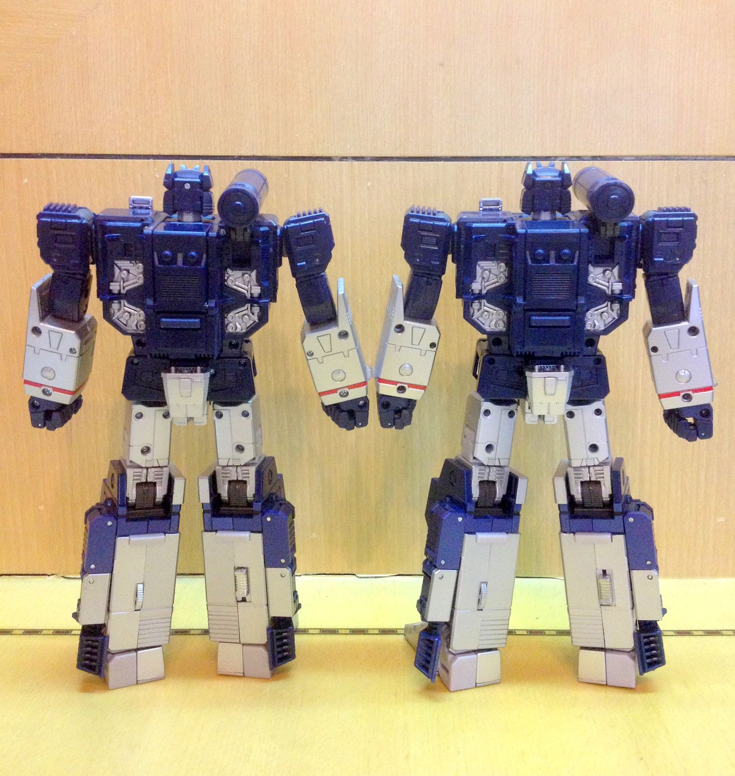 总的来说,单从涂装来说,美版日版除了眼睛配色差异明显外并没有太大的差别,我手头的两只涂装素质可谓是不分高下,基本持平。究竟选择美版还是日版,个人的建议还是请综合考虑各种情况(磁带,人物卡,纪念币,价钱等等)。如果同样是声波控且有闲钱的话,推荐双入!反正我真的很难满足于在柜子里只展示MP声波的一种形态……