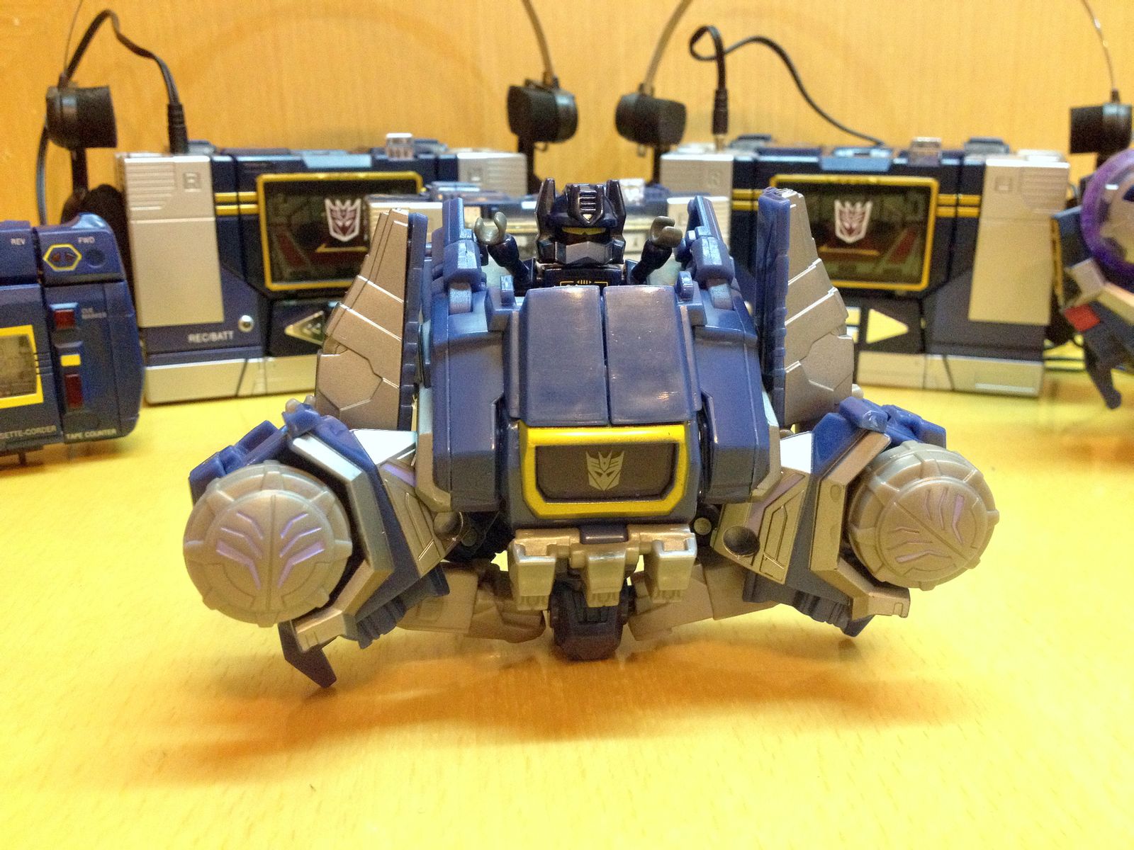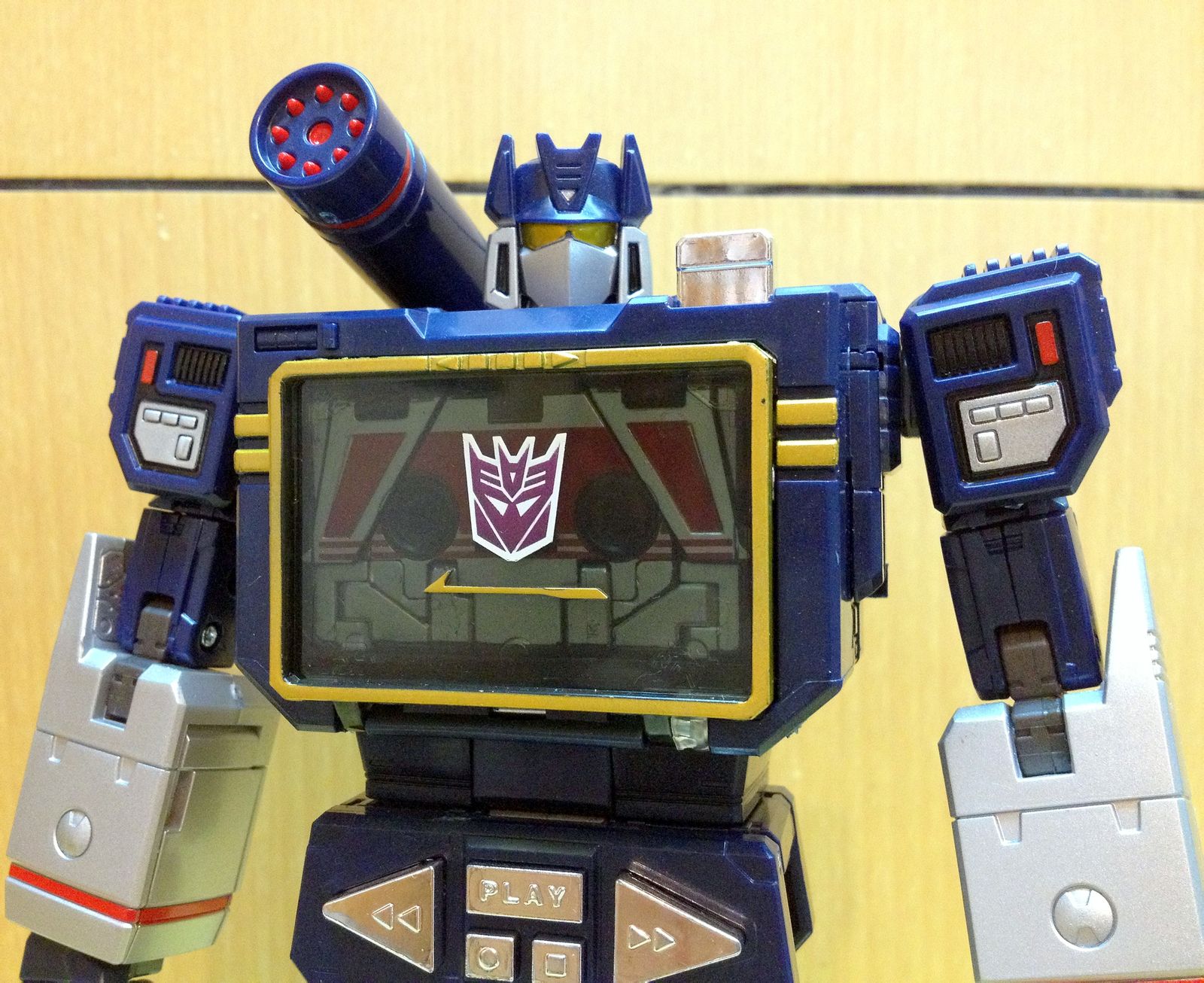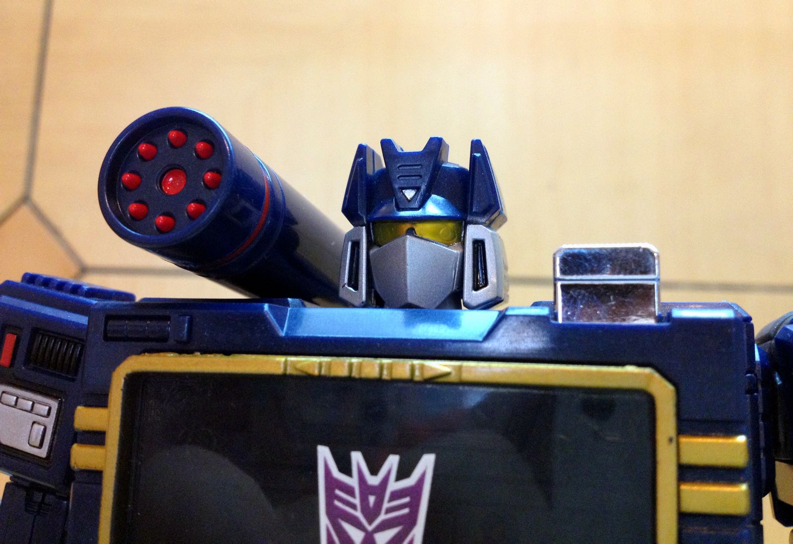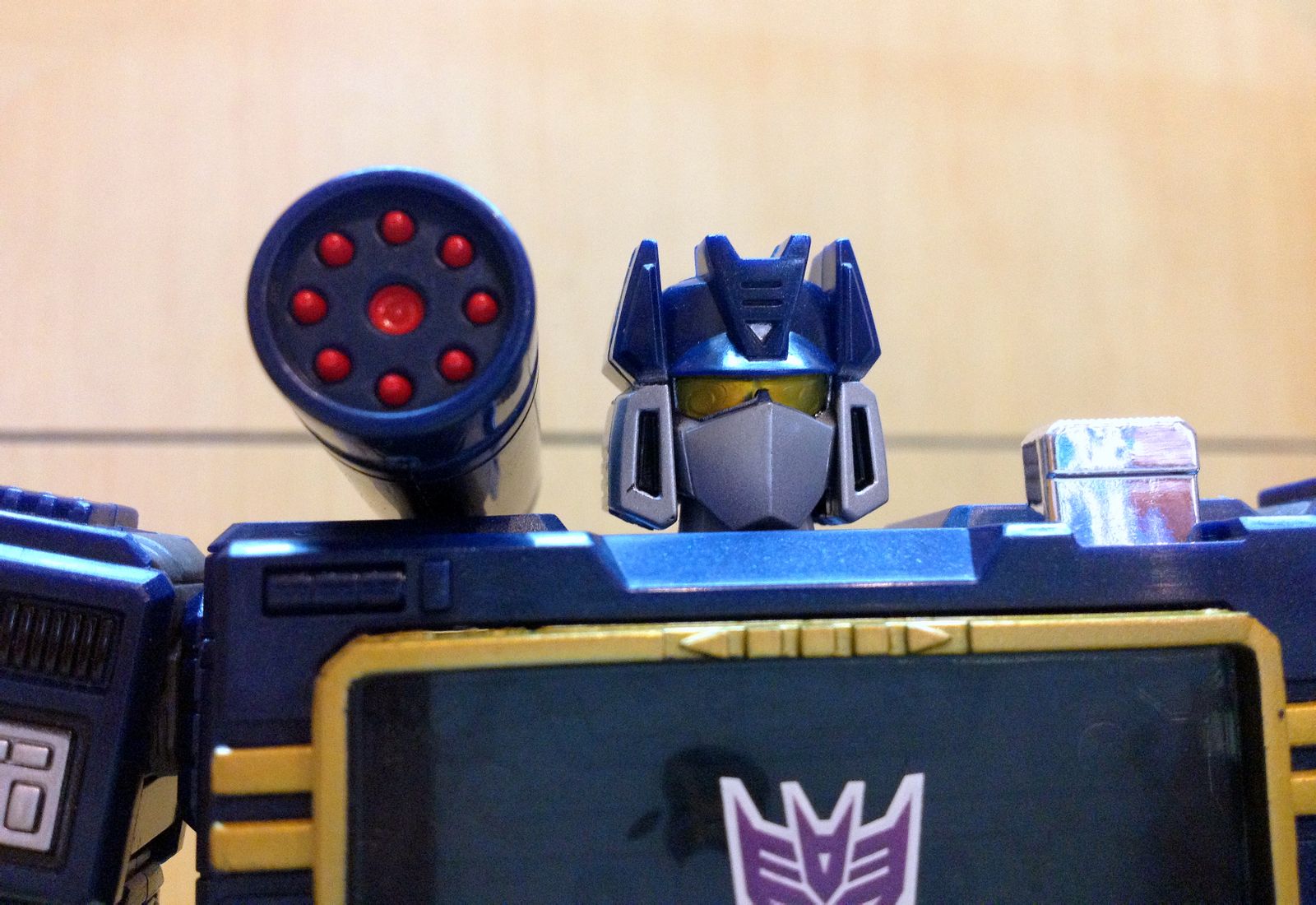 一直以来,声波都是我最爱的变形金刚角色,帅气的身姿,神秘的口罩,迷人的声线,忠实的做派,稳健的行事风格,再加上完美契合Robots in Disguise这一主旨的伪装,此外还拥有“其乐融融”的一大家子小磁带,在整个TF界都可谓是自成一派。这么多年来,声波一直都是我心目中完美诠释变形金刚核心精神的最佳角色,在这一点上,柱子都还要往后排……