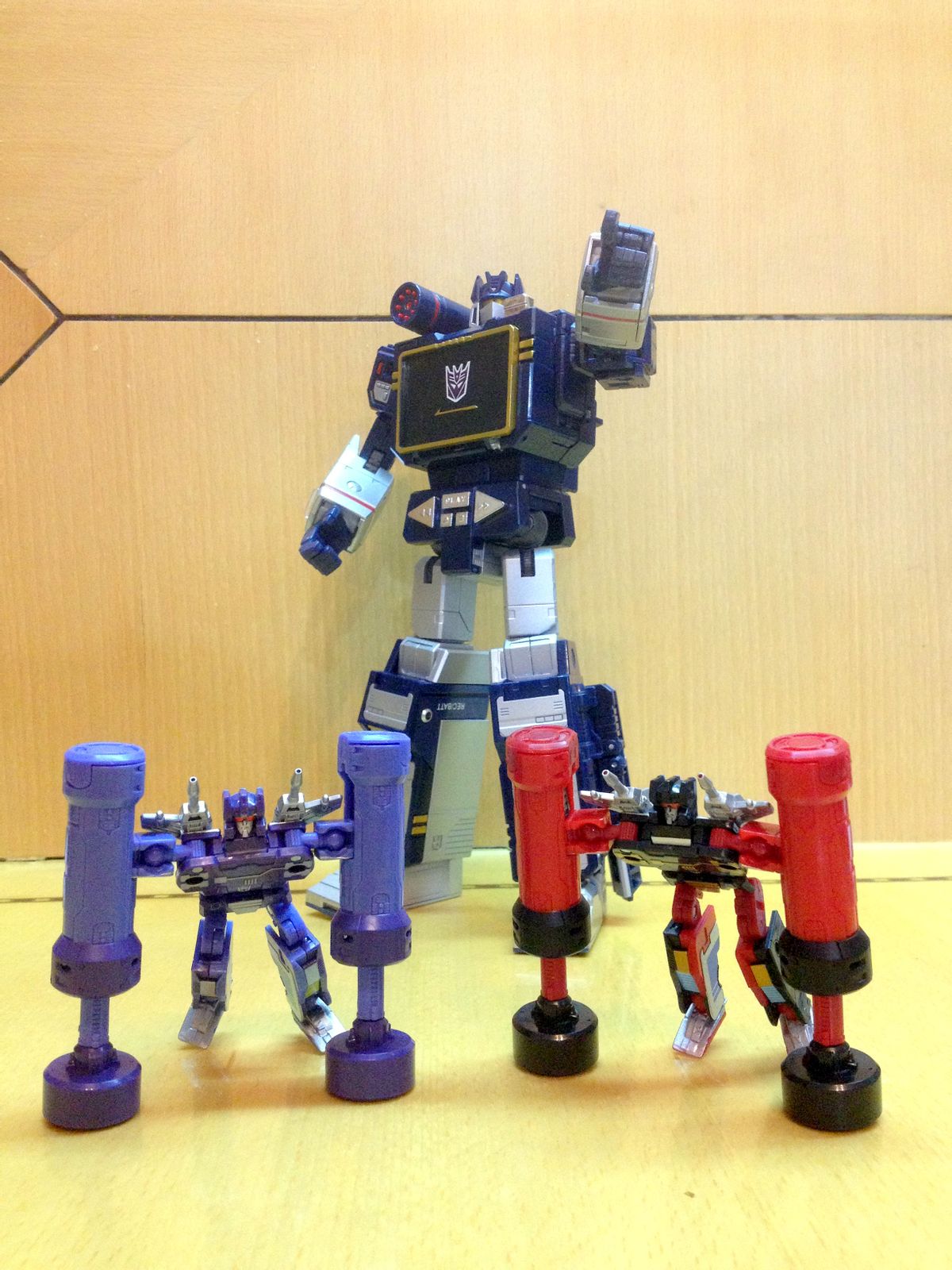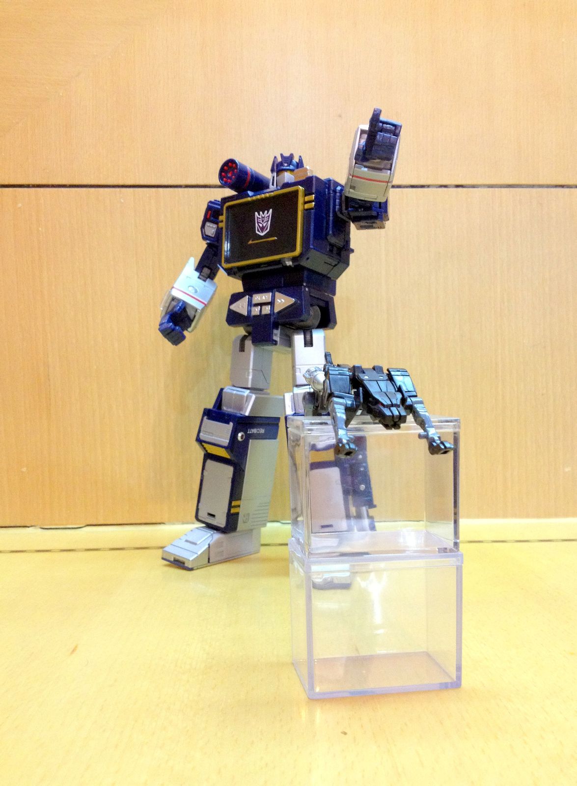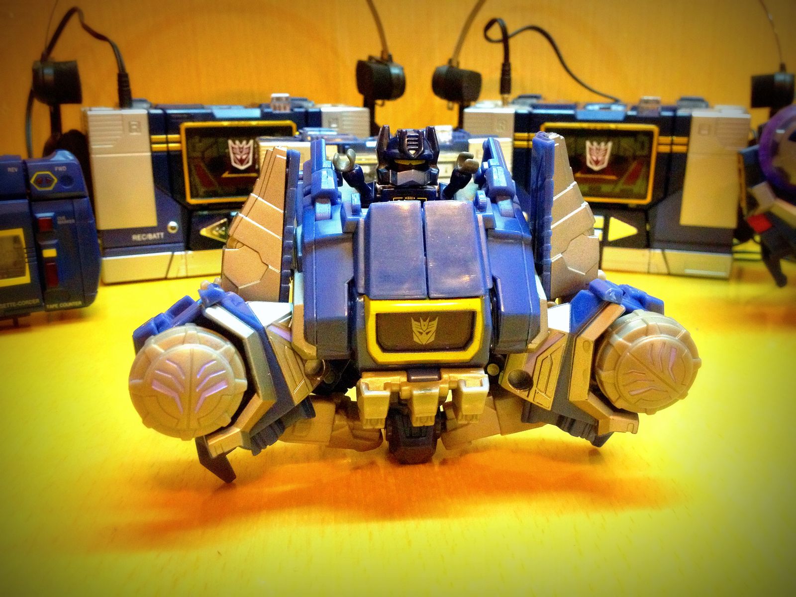 一直以来,声波都是我最爱的变形金刚角色,帅气的身姿,神秘的口罩,迷人的声线,忠实的做派,稳健的行事风格,再加上完美契合Robots in Disguise这一主旨的伪装,此外还拥有“其乐融融”的一大家子小磁带,在整个TF界都可谓是自成一派。这么多年来,声波一直都是我心目中完美诠释变形金刚核心精神的最佳角色,在这一点上,柱子都还要往后排……