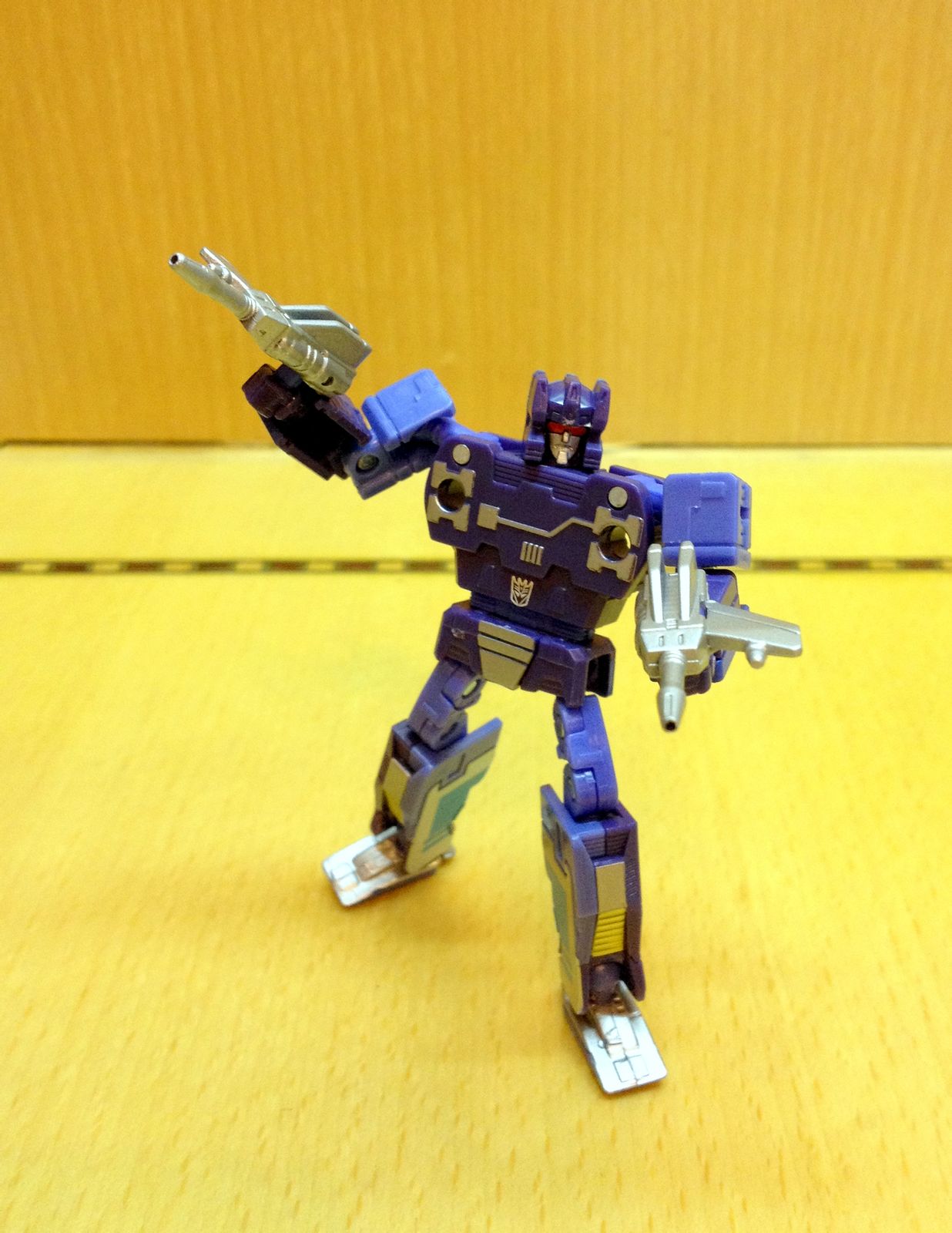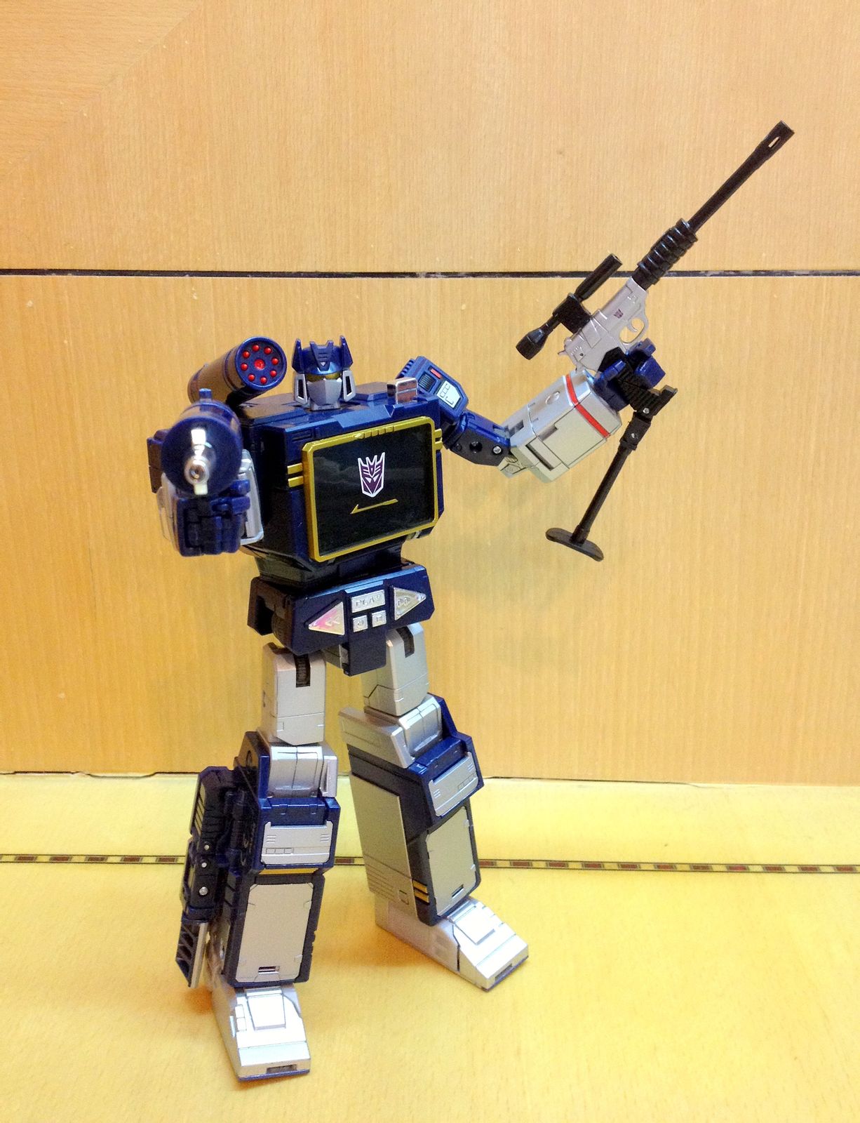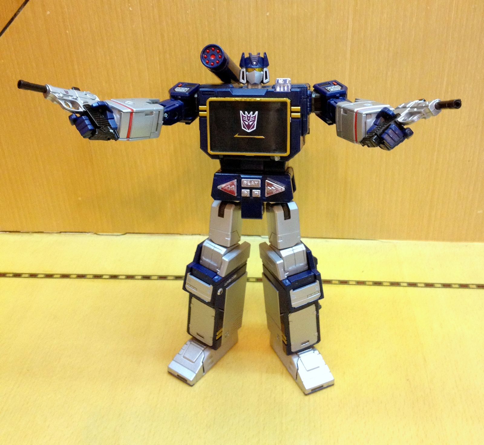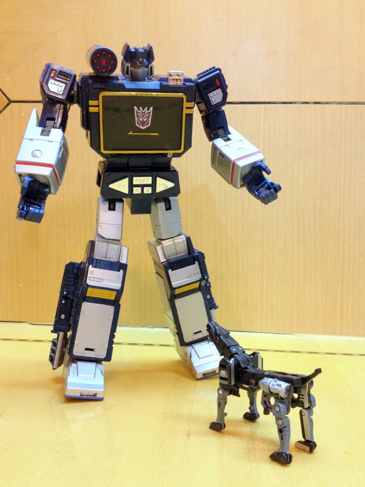一直以来,声波都是我最爱的变形金刚角色,帅气的身姿,神秘的口罩,迷人的声线,忠实的做派,稳健的行事风格,再加上完美契合Robots in Disguise这一主旨的伪装,此外还拥有“其乐融融”的一大家子小磁带,在整个TF界都可谓是自成一派。这么多年来,声波一直都是我心目中完美诠释变形金刚核心精神的最佳角色,在这一点上,柱子都还要往后排……