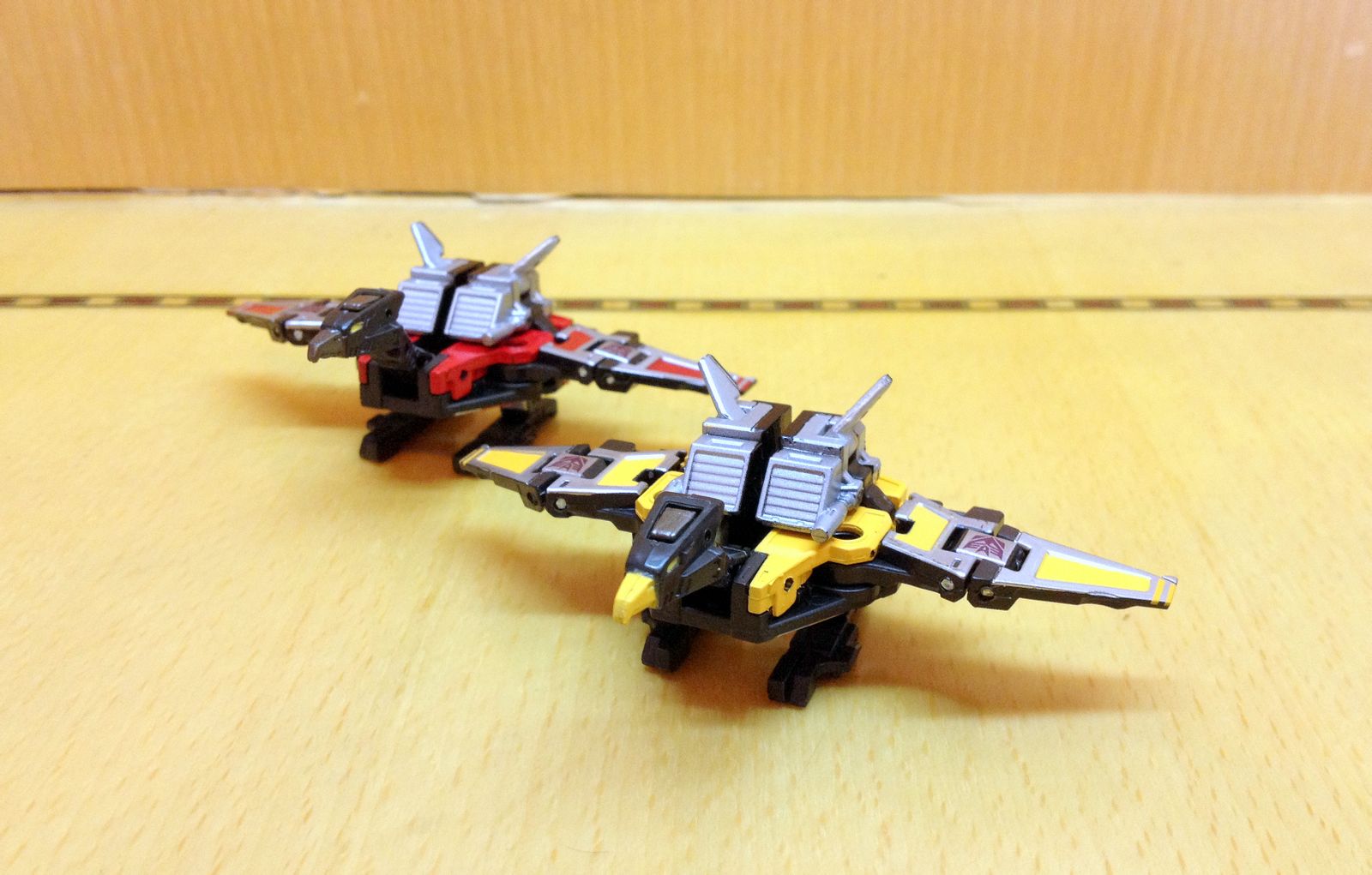 迷乱和轰隆隆就不能做到无需配件,一体变形了。不过考虑到打桩机的尺寸如此巨大,想来一体变形也是不现实的。这么想想觉得激光鸟和机器狗更加难得了!(你又把圆锯鸟忘了……)
