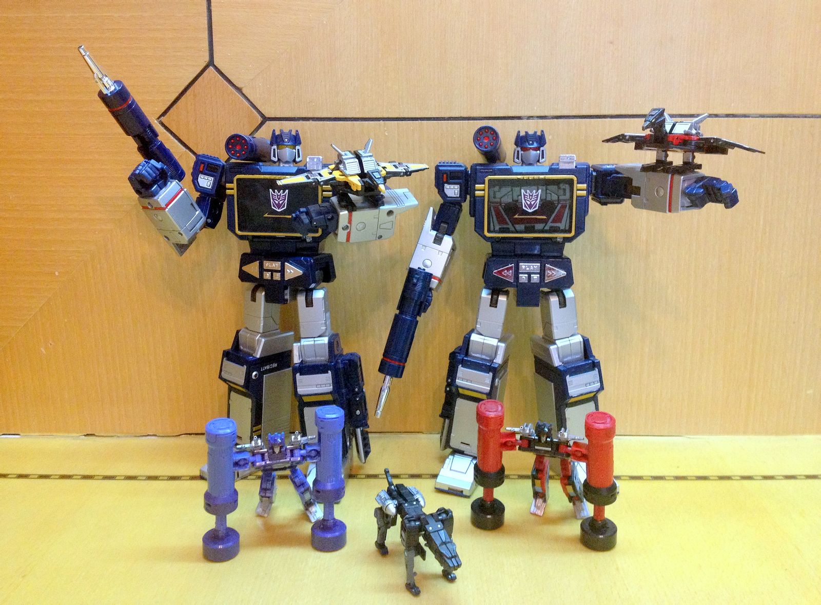 从上到下哦分别来自于:美版MP-02声波,日版MP13声波,MP04擎天柱以及MP02通天晓。