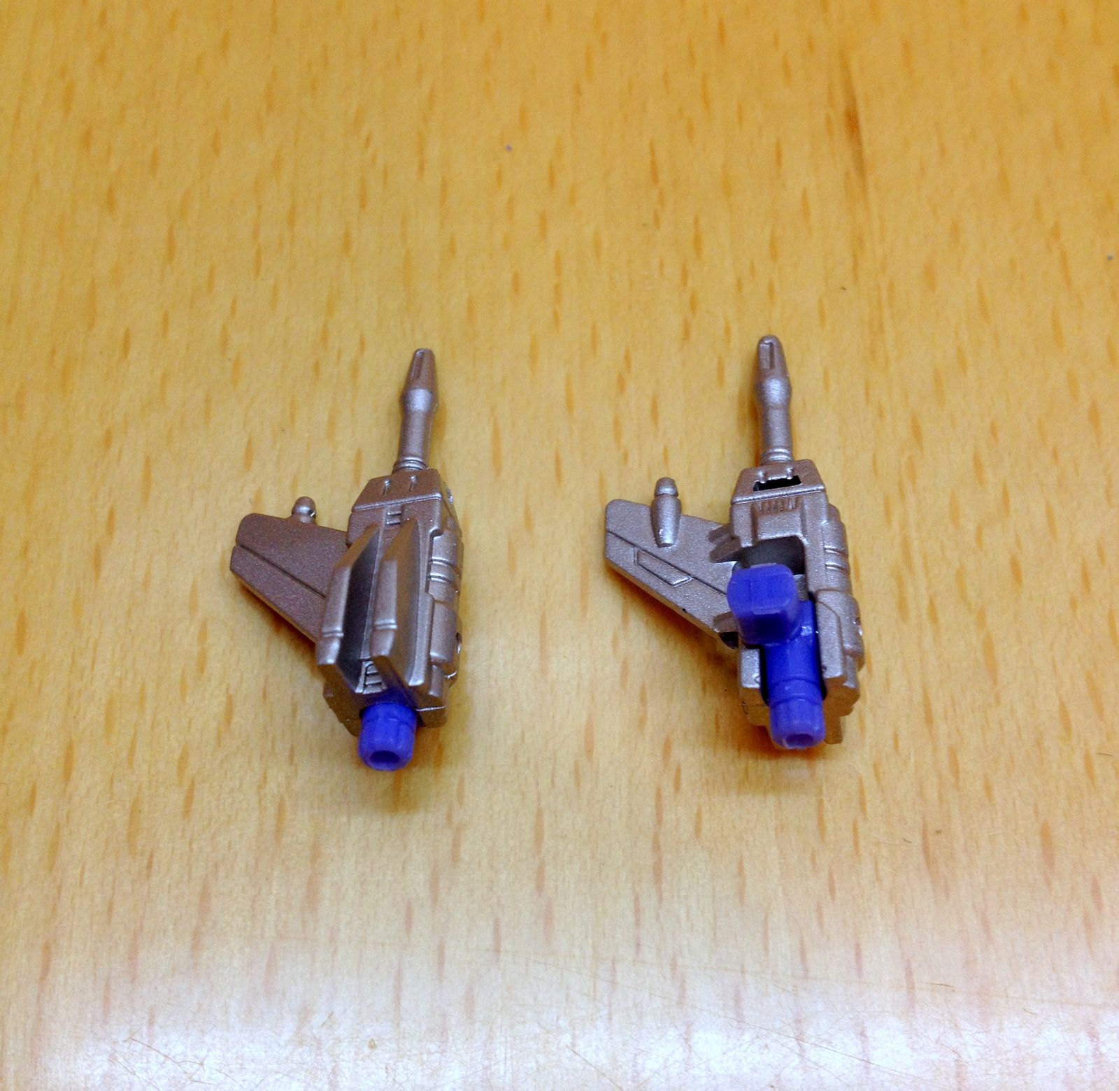 为了方便比较,图片同样是左边美版,右边日版,并且同样在磁带仓里收纳了各自的激光鸟。不同的则是,日版的激光鸟正在忧桑着它藕断丝连的尾翼……