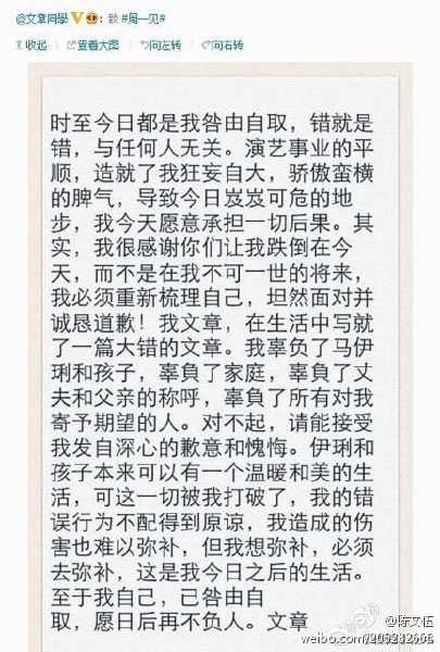 文章道歉信竟然是抄高晓松酒驾道歉信!!!