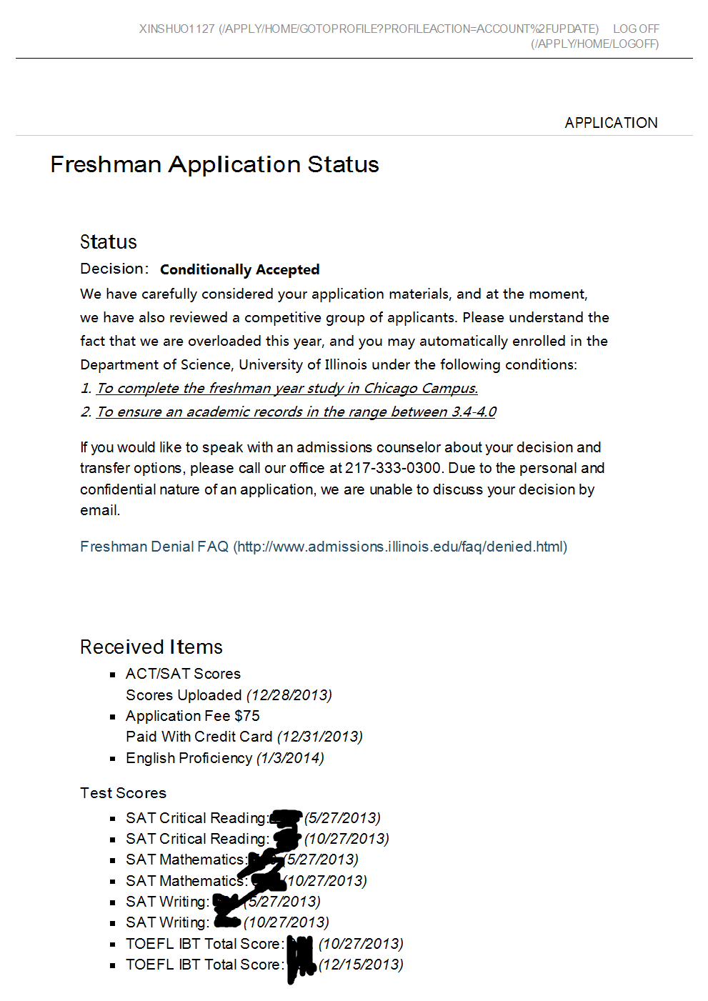我也从没听说过UIUC还能有条件录取,要不贴吧里这么多分数不错的孩纸也不用接拒信了。建议你尝试找中介把UIUC的账号密码要过来,自己登陆看看到底是真是假。
