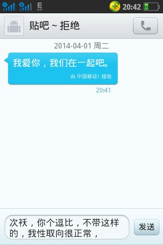 突然有个逗比发短信说 爱我,要跟我在一起,果断上图