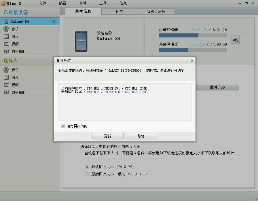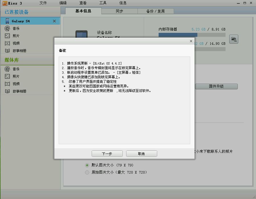 下午连接kies看到更新了,正在更新中,二楼上图