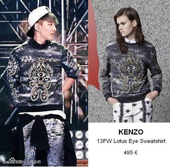 东赫决赛唱jab的这件是kenzo的 太阳穿过同款的红色 而且这是件女款 楼主在官网截了张对视图 哈哈哈 价格495欧 人民币4000左右
