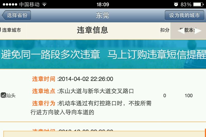我是东莞牌的,查了不用扣分,只罚款100元
