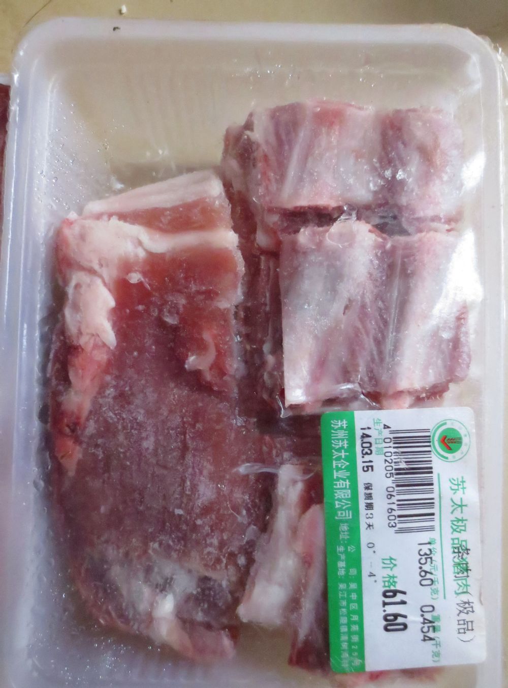这不是冰鲜肉,,看看保质期,,零下4度,,只有3天的保质期,,,,我们只能吃过期的,,,但是也没事,,就是冰冻肉,,不过也都是这半个月左右的,,国家库存肉放的时间更长都没事,,我们这个就凑合着吧