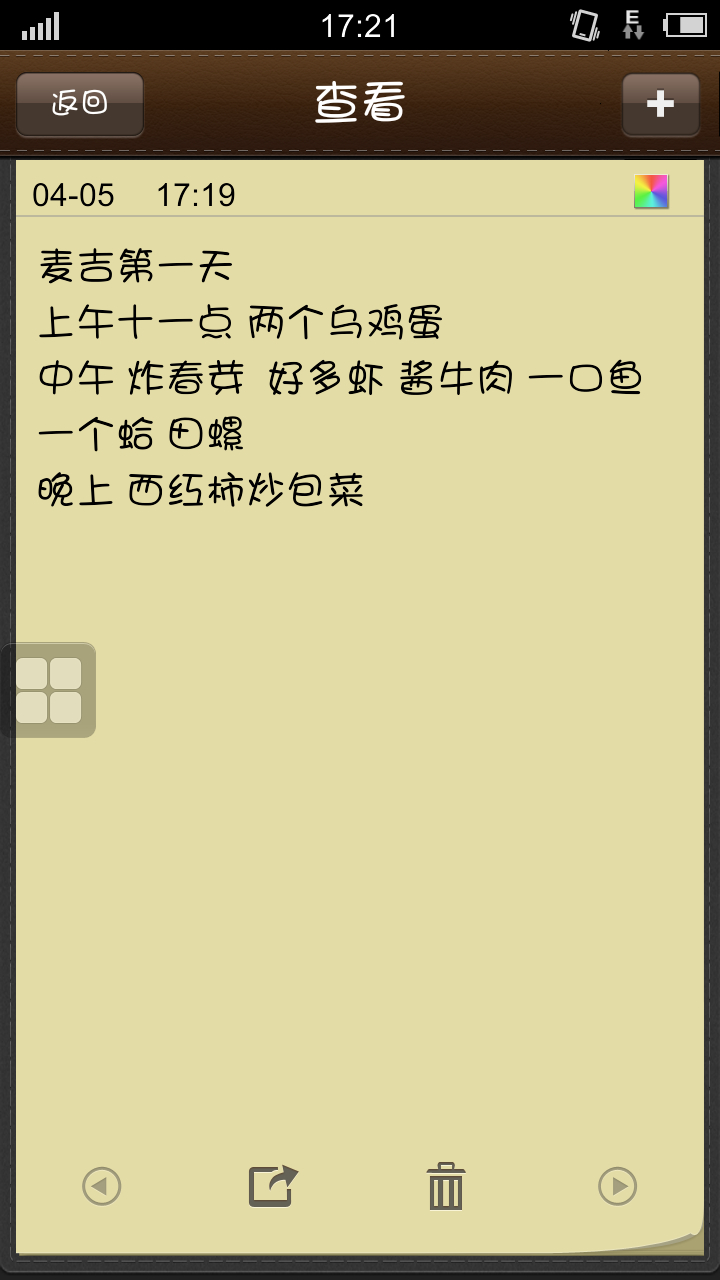 明天要开始第一天麦吉了,好激动呀!决定还要配合塑形,给自己加油吧!明天上午要去超市买菜菜。大家晚安!