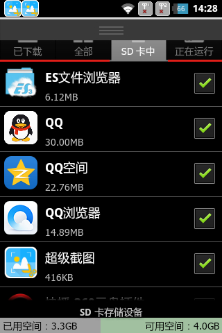 经过几天观察,总算找到手机变慢的原因了。原来是SD卡上的软件太多了,用Link2SD移动过去的。前两天又把手机初始化了一次。这次不装link2SD软件了,结果各种之前缓慢的软件运行流畅。然而,装了几个体积巨大的软件后,空间不够了,发现有部分软件可以移动到SD卡,于是把能移动的软件都移动了。软件放到SD卡到了一定数量后,手机就开始出现缓慢的问题了。现在总算明白,以前我用link2SD把所有软件都装在SD卡上,难怪手机运行起来卡得一逼。以前进入手机要等所有软件加载完才显示桌面,现在没link2SD了,是先进入手机桌面,才加载SD卡,现在重启快多了。那些手机里的软件可以直接运行,SD卡的等它加载完了才显示。我买的是便宜的SD卡,速度慢,估计要高速SD卡才行。现在安装的软件少了,但是手机把玩几个小时后还是要重启才能流畅。现在的软件都想要,我该删掉哪些才好呢。内部存储不够,网上有人优化出330M内存空间,不知道都删掉了啥。我这个现在只有289MB空间可以装软件。愁。