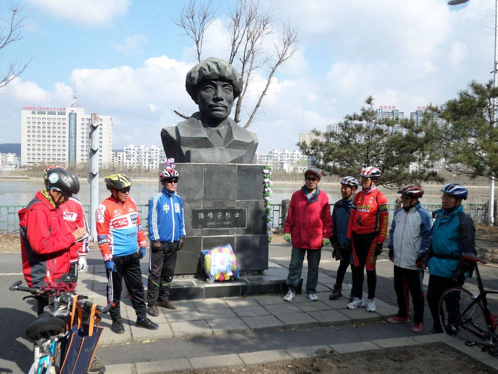 清明节随拍(二)祭奠杨靖宇烈士,刚刚路过的时候就已经有不知名的人士敬献了一个花环,刚拍完照就有抚顺骑友联谊会(中老年)的十几位老人来到烈士像前祭奠花。据老人家讲,他们每年清明节的时候都要来。