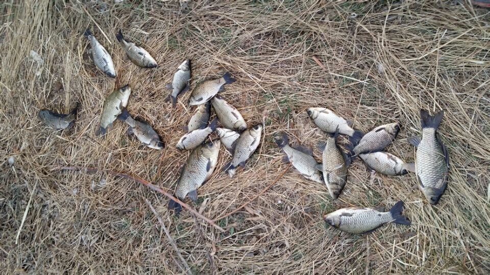 补充一下 5号 到的 由于4号刮了一天大风 5号风也不小 所以 没钓 而且这是个新钓点 捞完草 后 已经是 中午 打了点用玉米碴 药酒 泡的窝子 扔了两小块豆饼 开始养窝子 第二天 4点 起床开车120公里 到地点 下杆 10分钟不到 上了第一条 7两的 钓饵用的 是 蚯蚓 齐手线 铅坠到底 短子线 接着一天小连杆 不过 2两一下的 很多 都扔了 就留 了这点 汇报完毕!