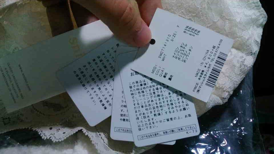 这件衣服虽然是在澳门买的但是貌似是日本的货,居然没有标HKD直接是JPY,提醒注意的标好多感觉衣服好像很脆弱的样子……