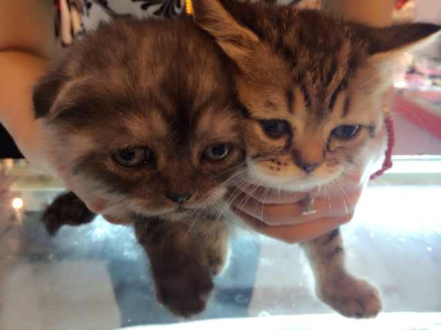 看样子是虎斑吧……可是这几个小家伙是一窝的吗?如果是一窝的话,那就叫做苏格兰折耳、苏格兰折耳立?