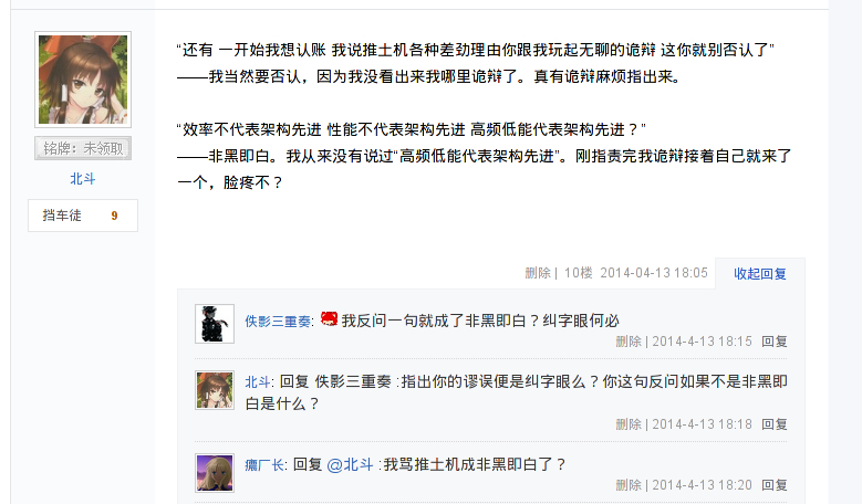 ——我怎么看我说的“非黑即白”都是指的是他的那句反问是非黑即白啊,况且后面那句话是对““非黑即白”一词的补充说明,进一步阐释“非黑即白”指的是他的反问,应该没有歧义啊?怎么会被理解成“骂推土机成非黑即白了”呢?到底是哪边的问题?