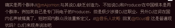 回复 WINCHELLJON :所以说在国内dj和producer是两个完全不同的概念 在国外一般都是producer然后现场就是dj 国内只有现场dj producer一般都不弄现场 也可以说是机会比较少