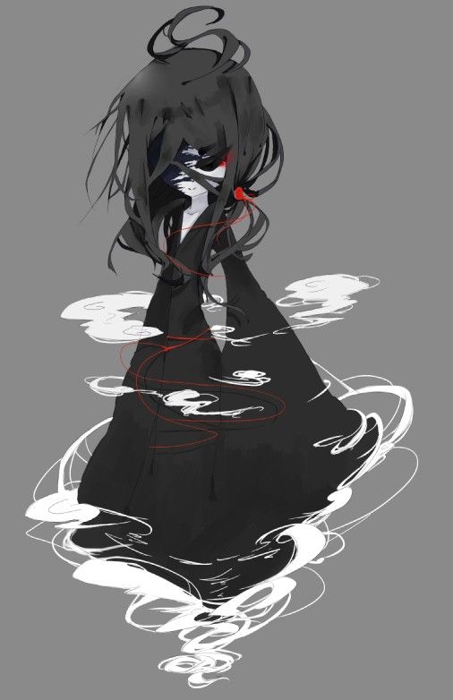肤色苍白。左半边脸被类似于雾气?的深蓝色斑纹覆盖。眼睛全黑。眼角下方微红(o゜▽゜)o☆