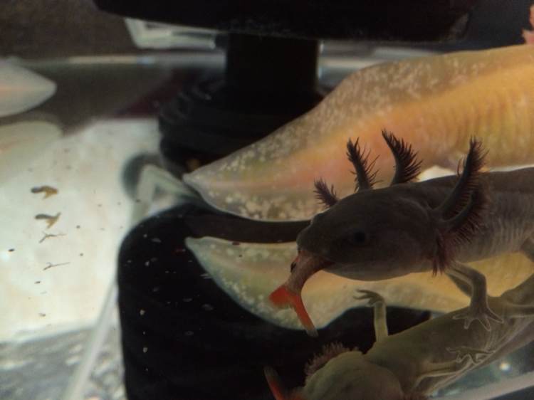 怕它吃太大的会便秘,用镊子夹着鱼尾扯,这货就是不松口啊,都被我拖出水了还死死咬着