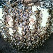 飞走的蜜蜂又回来了,15号傍晚发现蜜蜂箱空了,飞了,找了一大圈没找到,16号傍晚发现有蜜蜂进出,没在意。17号早晨又发现有蜜蜂进出,玩上21时30分打开大盖一看:惊喜万分,一个大蜂团吊在沙盖上----乖乖!飞走的蜜蜂又回来了!!!乌拉!祝贺吧!!