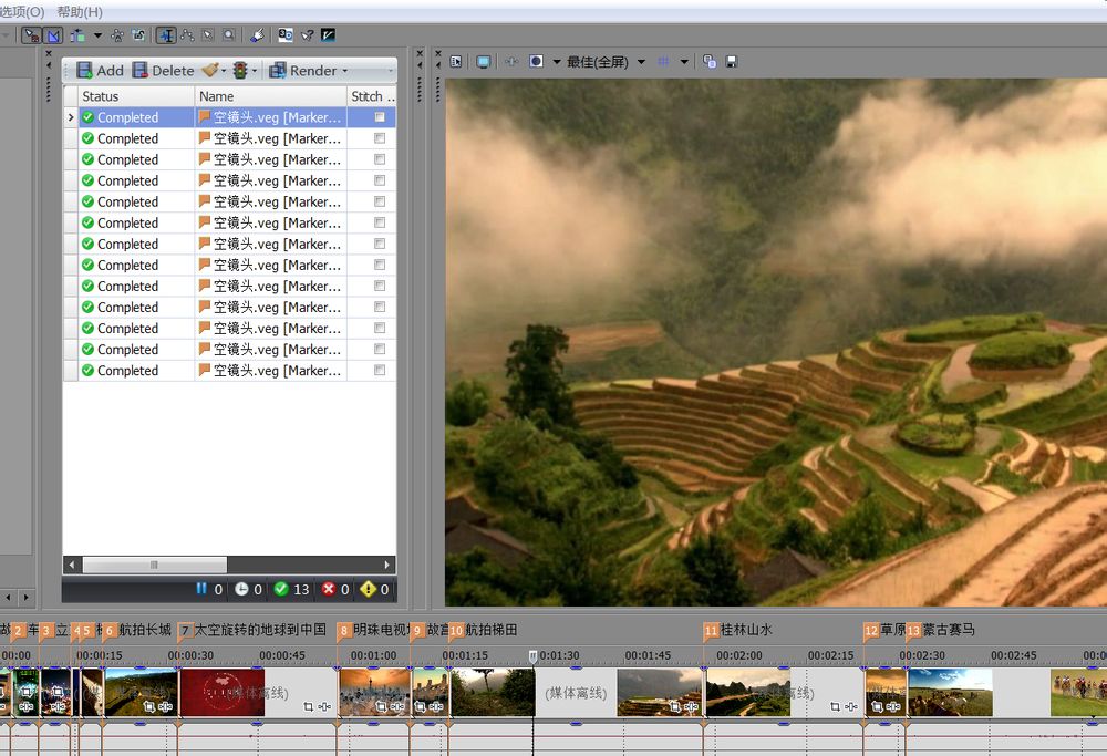 一直以来受惠于vegas贴吧和DV论坛,学到不少东西,淘到很多好用的插件,这里分享用vegasaur做的批量渲染,清晰度720P,码率8000,一共13个风景片段